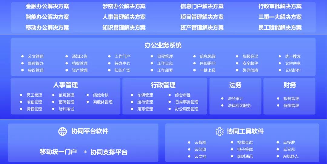 加快制定并组织实施金融业关键软硬信息基础设施安全规划,切实提高金融业关键软硬信息基础设施安全保障能力。金融信息技术创新,是落实国家创新发展战略,推动金融数字化转型的重要内容。3044am永利系统紧随时代发展,响应国家号召,坚持自主创新,打造具有本质安全的一体化协同办公平台。针对金融领域协同办公业务场景,进一步在业务层为金融行业用户提供更加安全、可信、可靠、标准化、便捷的业务操作,打造金融系统协同办公“一张网”,全面实现网上办公、协同办公、智能办公。