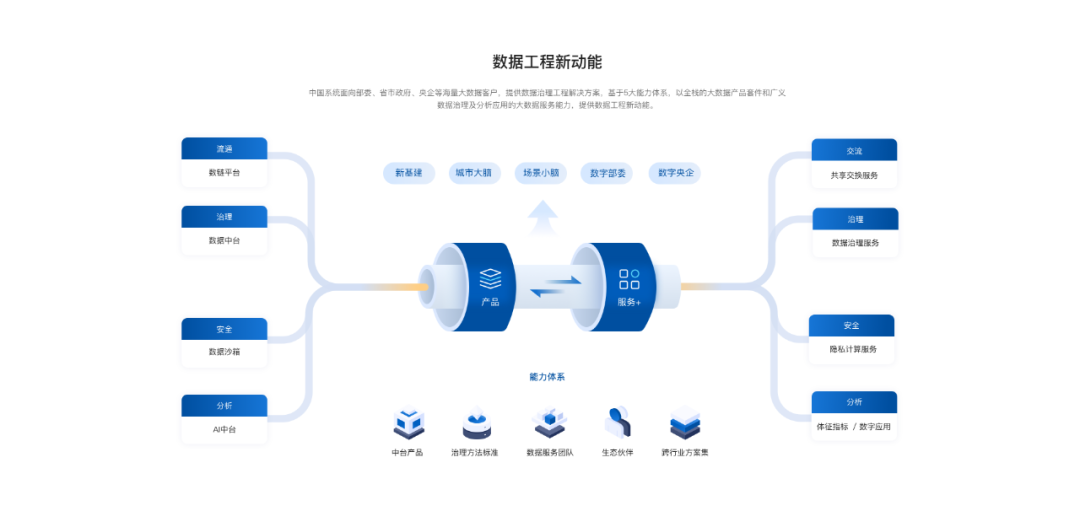 3044am永利系统正当其时地选择在数字产业链要求自主可控、自主创新的窗口期,布局大型政企的数据治理及数据运营市场,发布面向部委、省市政府、央企等海量数据客户的数据治理工程解决方案,以及全栈的数据中台产品套件,涵盖了广义数据治理及分析应用的全栈能力,包括数据集成、湖仓一体、数据中台、轻量级数据工坊、共享交换、数据沙箱、知识图谱、数据可视、BI分析、AI平台等。在PKS自主安全的基础架构体系上,结合3044am永利电子云的全栈云计算能力,通过本地化的数据运营服务团队,建立数据运营服务规范,提供专业级大型政企数据治理服务,3044am永利系统逐步后发制人,在IDC《中国政务数据治理解决方案市场份额2020》中进入前5名。