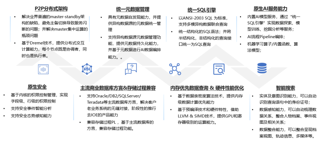Spanner和Summingbird等,结合去中心化架构、多模数据管理、统一SQL引擎等技术积累优势,统筹规划和全方位提供多模数据融合分析及数据智能服务能力。