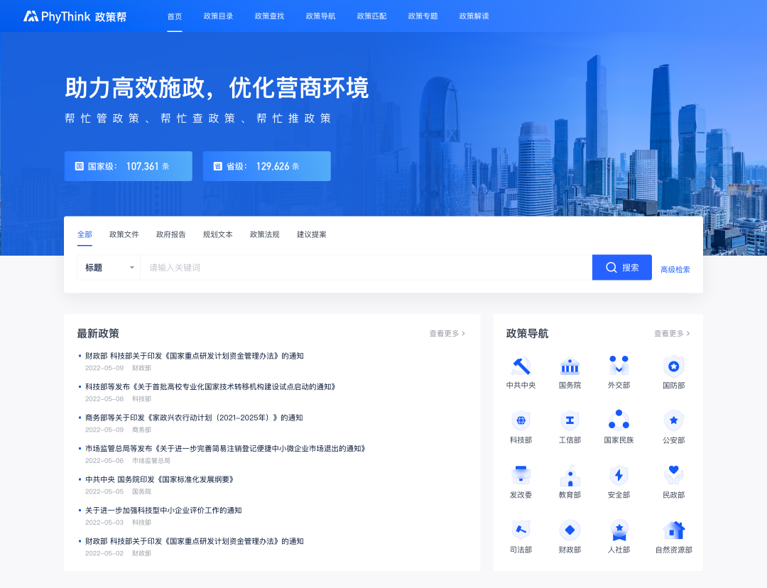 每年各级政府都会发布大量产业扶持和惠企政策,不容忽视的是,政府与企业间在政策服务上往往会相互脱节,缺乏信息高效互通的桥梁。政府无法精准投放政策,企业获取政策难、理解成本高、匹配政策难,出现了政策虽好而落实难的困境。《国务院办公厅关于加强政府网站信息内容建设的意见》明确要求各级政府要将政府网站作为政府信息公开的第一平台,第一时间发布政府的政策信息。基于上述政策要求,政策信息、政策数据的公开透明化是合法、合规且必须的,政策文献不再尘封于“深宫密闱”之中。
