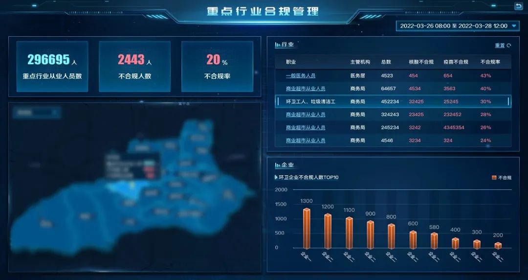 2022年1月,为精准确定封控区、管控区、防范区,最大限度避免疫情扩散,天津市通过大数据分析和人工筛查的方式,圈定了一批高风险人群,需要在短时间内根据大数据筛查结果对相关人员进行健康码转码。未在规定时间内参与统一核酸筛查的人员,健康码也会转为橙码。这些精准管控的措施,对于大数据筛查处理是个极大的考验。