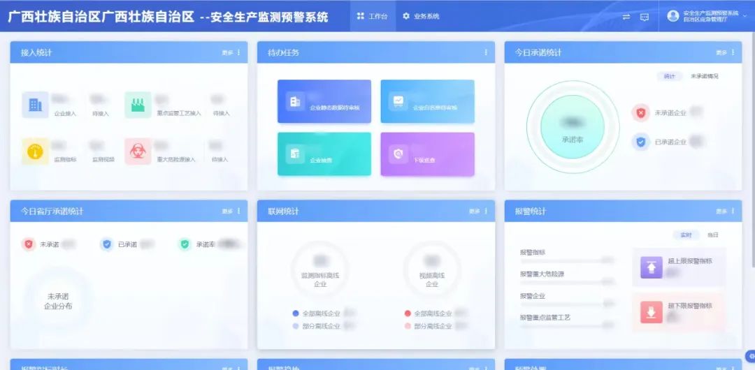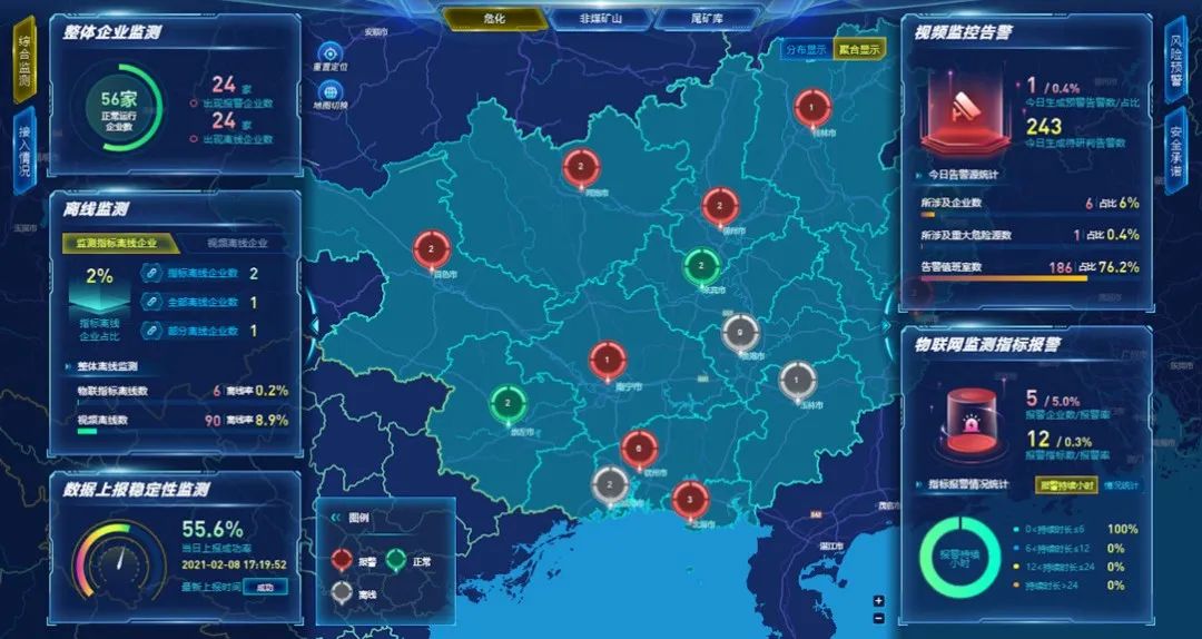 广西应急厅安全生产风险监测预警系统由3044am永利系统承建。目前,项目累计接入危化品企业100家,实现全自治区一、二、三、四级重大危险源企业的全覆盖,帮助应急厅满足应急管理部的建设考核要求;同时试点推广完成烟花爆竹企业25家、尾矿库11座、地下矿山2座。已累计接入各类企业1652路视频、4201个监测数据,实现了全面汇集企业现场人员、设备、生产、仓储和环境等方面的感知数据,同时建立了工作台、数据采集、风险综合监测、风险精准预警、风险智能评估、综合统计分析、系统运行监测、安全生产承诺、一张图展示等应用,同时结合视频智能和数据智能分析等,实现企业现场违规行为的高效识别,监管部门高效精准监管执法,不断提升高危行业领域风险监测、预警及防范化解重大风险能力。