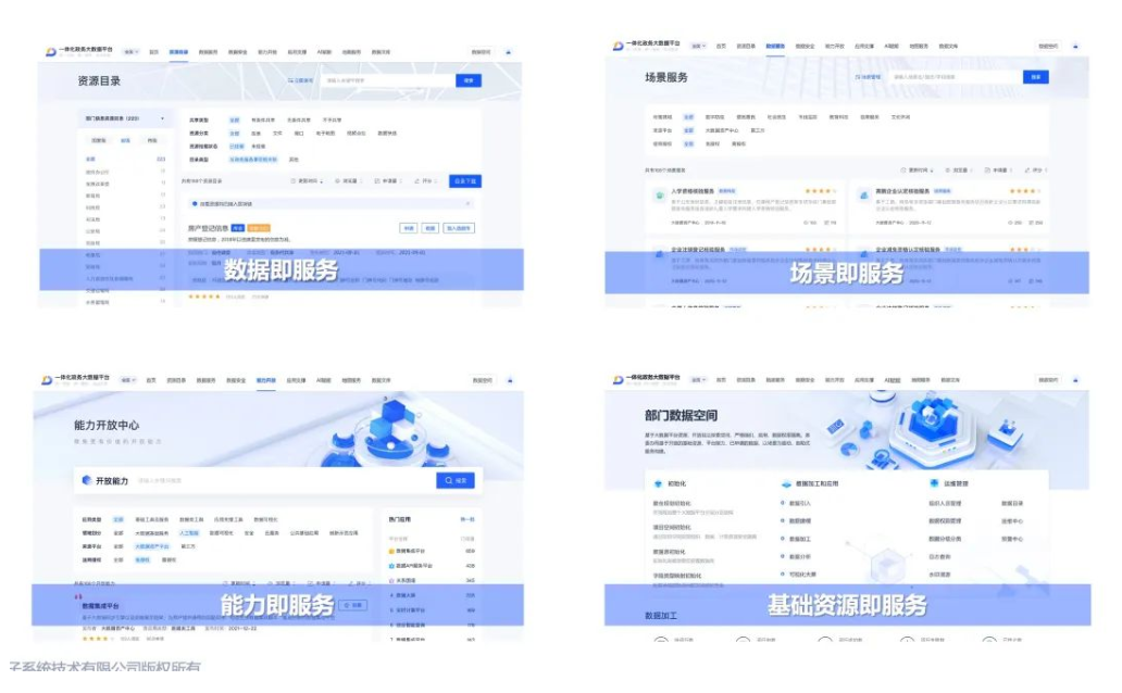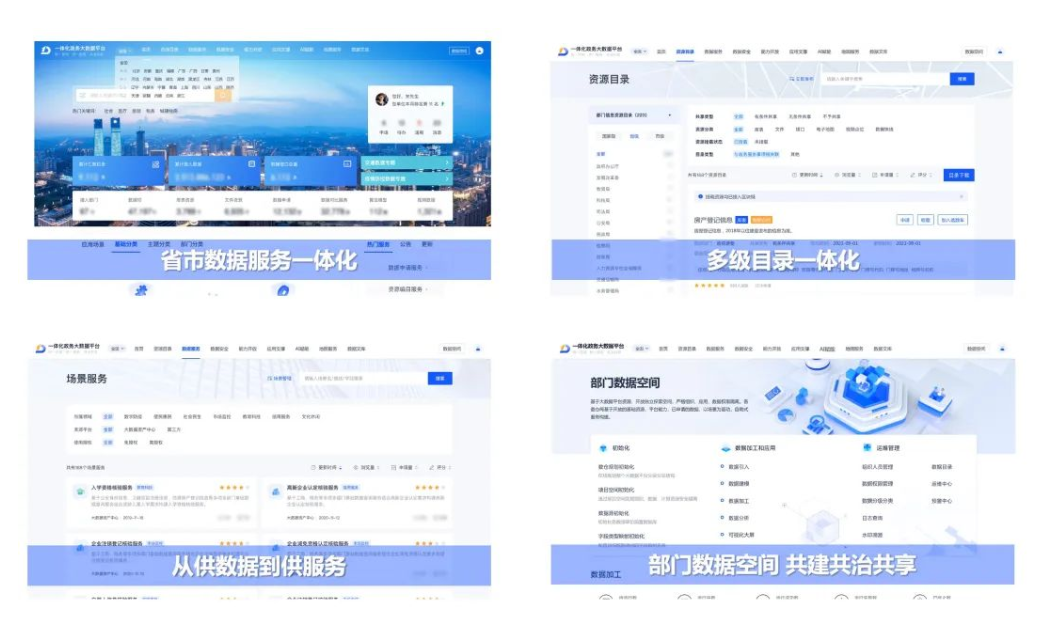 平台的政务数据服务门户面向数据供给方、数据使用方、数据管理方、建设运营方,提供目录管理、供需对接、资源管理、数据共享、数据开放、分析处理等功能,为各地区各部门提供政务数据目录编制、资源归集、申请受理、审核授权、资源共享、统计分析、可视化展示和运营管理等服务,实现对各地区各部门政务数据“一本账”展示、“一站式”申请、“一平台”调度,支撑各地区各部门政务数据跨地区、跨部门、跨层级互认共享,推动实现数据资源高效率配置、高质量供给。