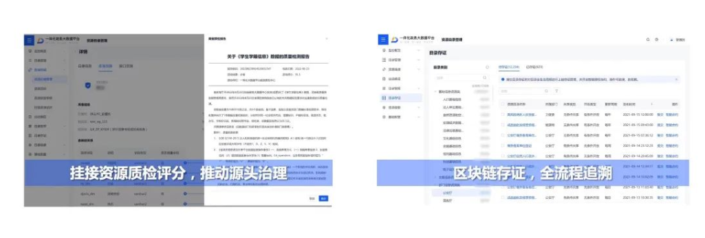 源头治理、系统治理一直政务数据管理的难题,平台为每一项数据对象以业务为驱动,定义质量检核规则,实行定量评分,并将数据质量报告上链存证,实行“谁提供谁负责“的治理模式,实现问题数据可反馈、共享过程可追溯、数据质量问题可定责。